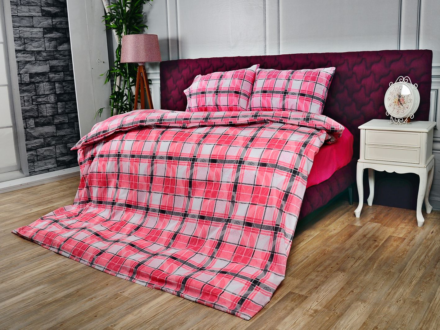 Ekose Pembe Nevresim Takımı %70 Pamuk %30 Polycotton'dan üretilmiştir.